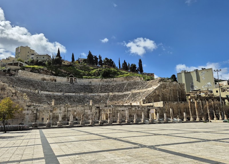 مدرّج روماني مُرَمّم منحوت في جانب التلّة ويستضيف مناسبات ثقافية ويضمّ متحفَين