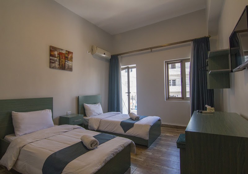 غرف مشتركة وغرف خاصة بسيطة في نُزل مشتركة مريحة فيها صالة جلوس وترّاس في الفناء وتتميّز بإطلالات على المدينة
